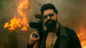 A Uploaded image create cinematic red-and-black movie poster featuring a rugged man in same dress Same pose, a and a pendant necklace. He is looking with a confident, intense expression. Dramatic red lighting floods the scene, with smoky textures and grunge scratches in the background. High contrast, moody atmosphere, neo-noir style, South Indian action film poster aesthetic. Bold handwritten English-style typography (toxic )in glowing red across the lower half. Dark vignette edges, cinematic shadows, ultra-detailed, sharp focus, stylized color grading, 4K resolution.